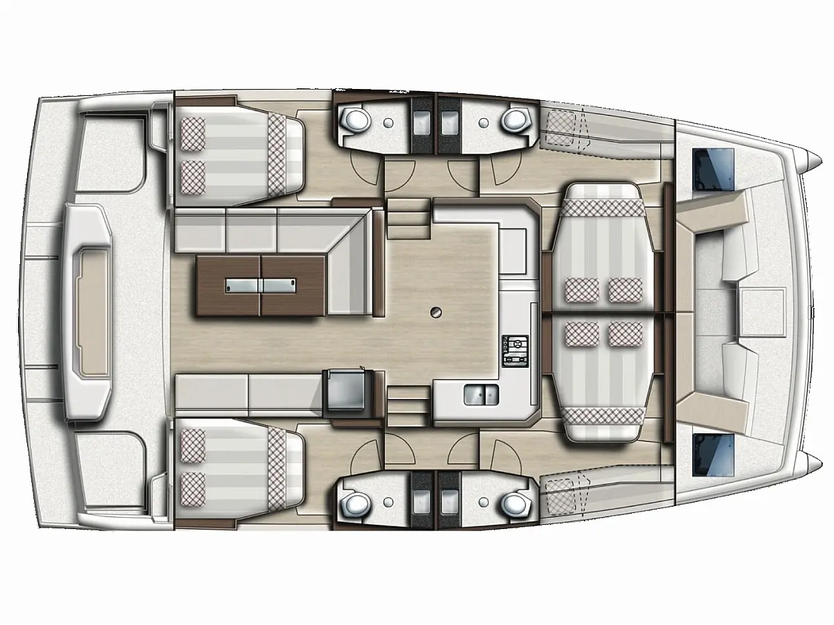 Generator, Electric winches, Bimini, Dinghy, Solar Panels, Air condition, Flybridge, Inverter, Water maker, Coffee maker, Heating, Refrigerator, Cockpit speakers, Barbecue grill in cockpit, Cockpit cushions