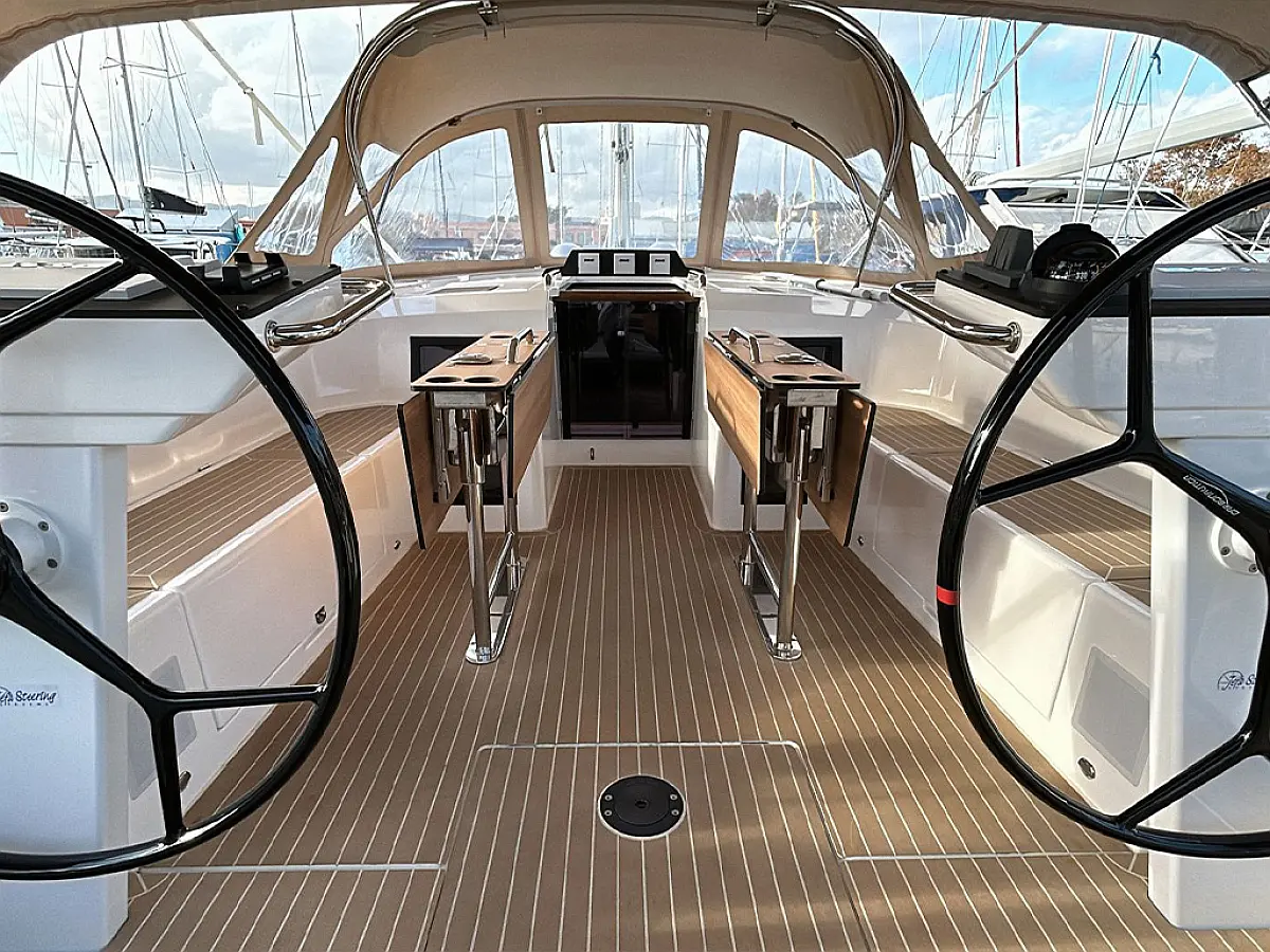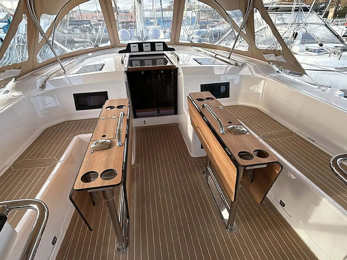Refrigerator, Bimini, Cockpit cushions, Sprayhood, Teak deck, Teak Cockpit, Inverter, Dinghy, Outboard engine