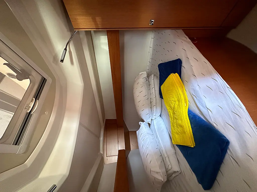 Bimini, Sprayhood, Outboard engine, Teak Cockpit, Electric toilet, Heating, Solar Panels, Cockpit cushions