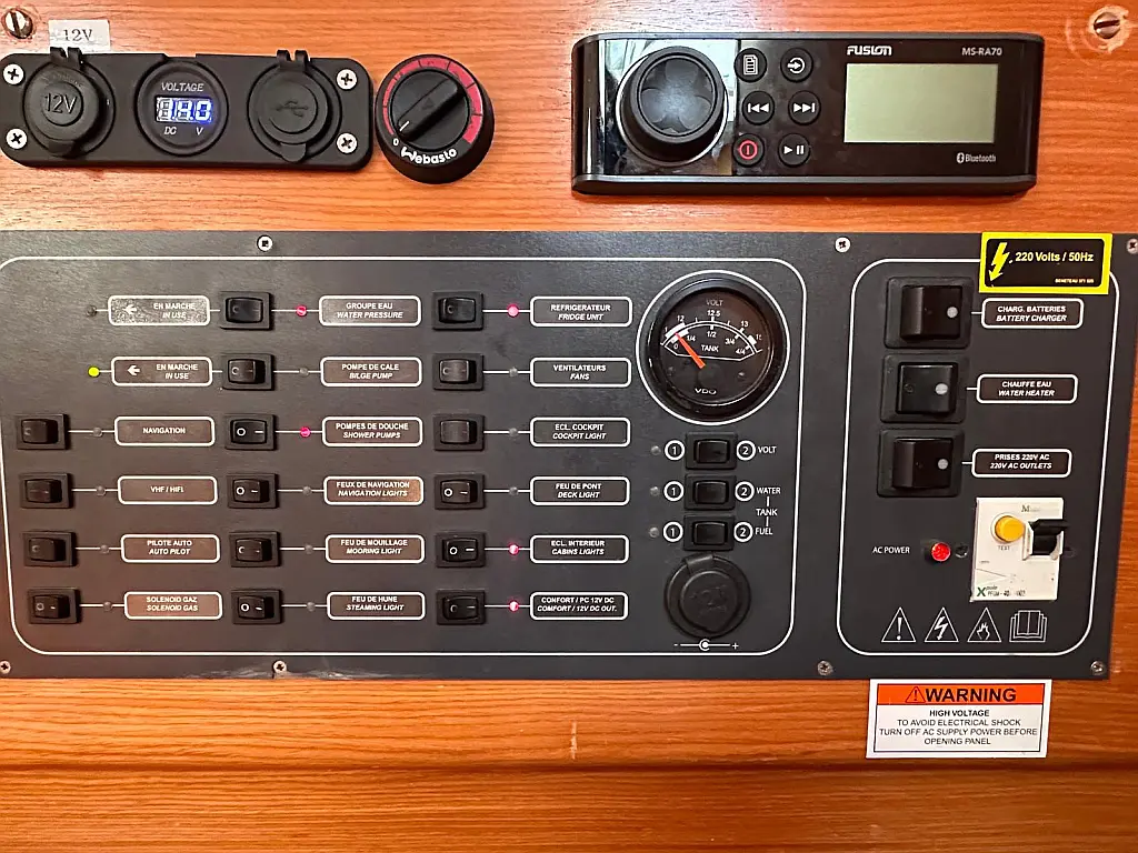 Air condition, Bimini, Cockpit speakers, Refrigerator, Heating, Solar Panels, Sprayhood