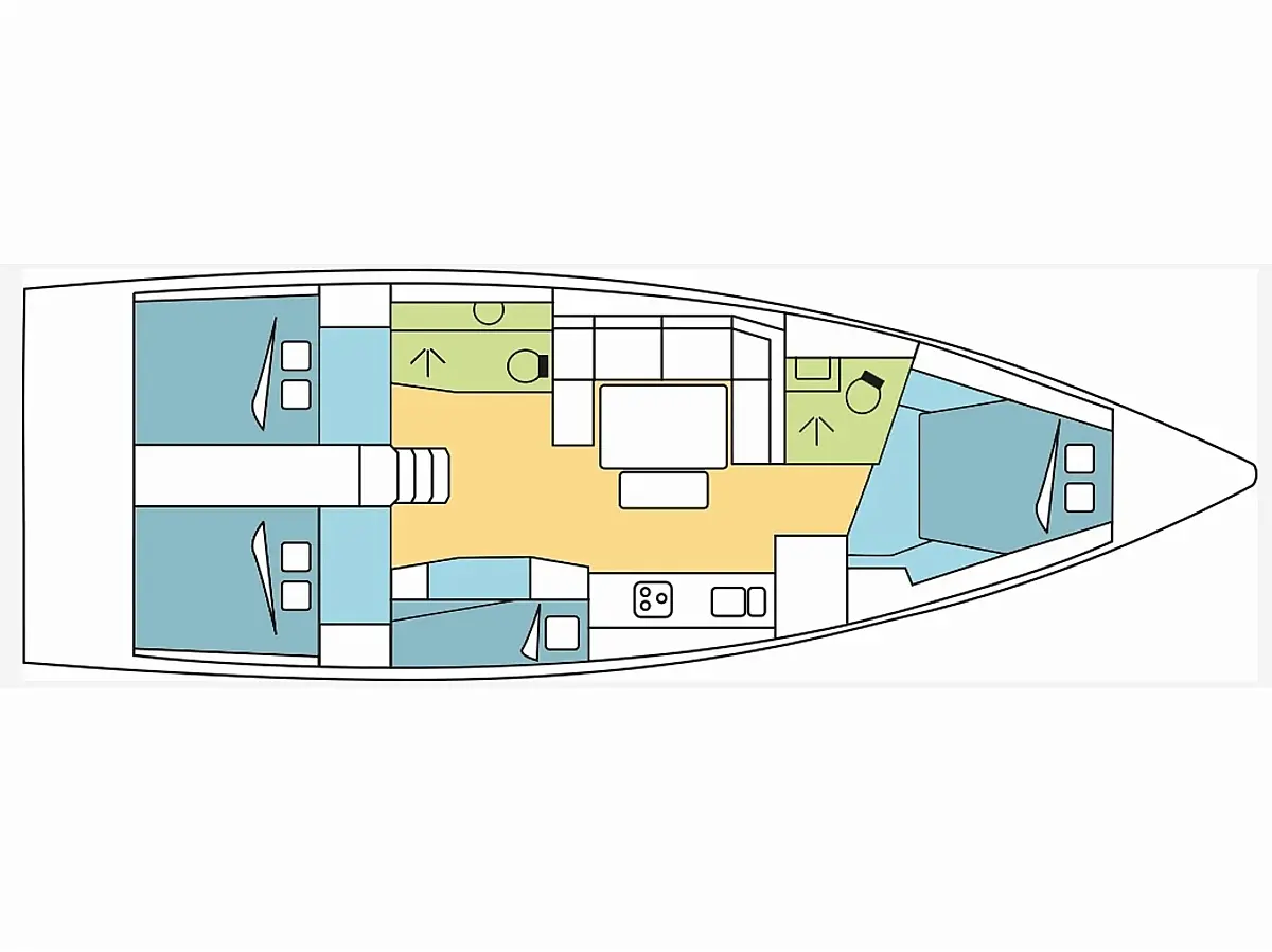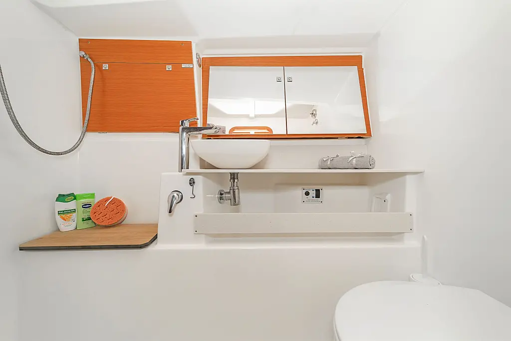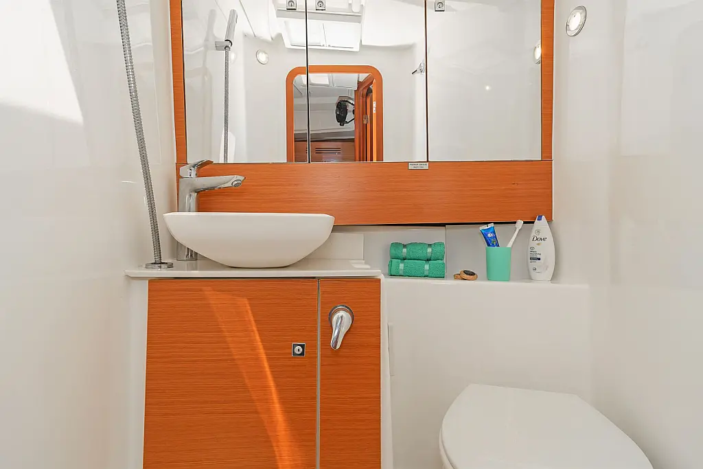 Cockpit speakers, Sprayhood, Bimini, Cockpit cushions, Solar Panels, Inverter, Refrigerator, Electric toilet