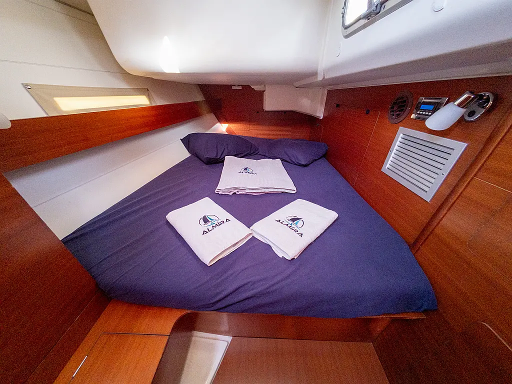 Teak deck, Outboard engine, Sprayhood, Dinghy, Bimini, Refrigerator