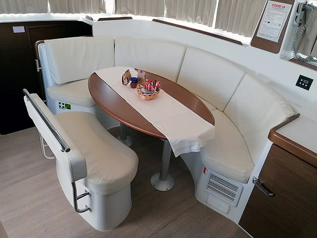 Generator, Heating, Air condition, Refrigerator, Bimini, Cockpit cushions, Outboard engine, Dinghy, Wi-Fi & Internet