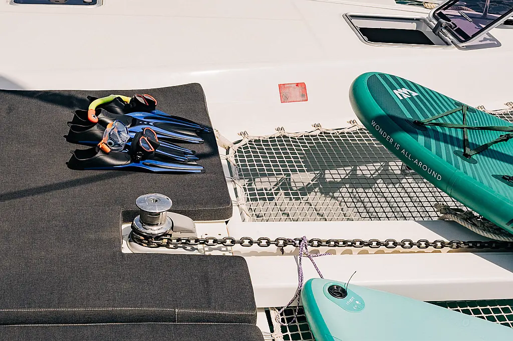 Electric winches, Air condition, Generator, Water maker, Electric toilet, Cockpit speakers, Refrigerator, Cockpit cushions