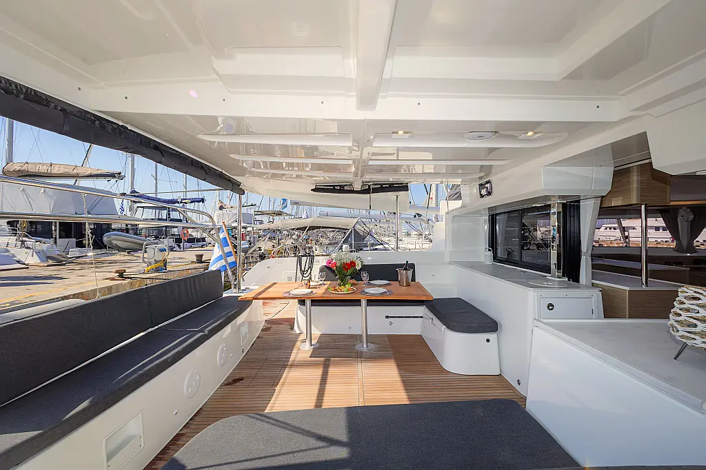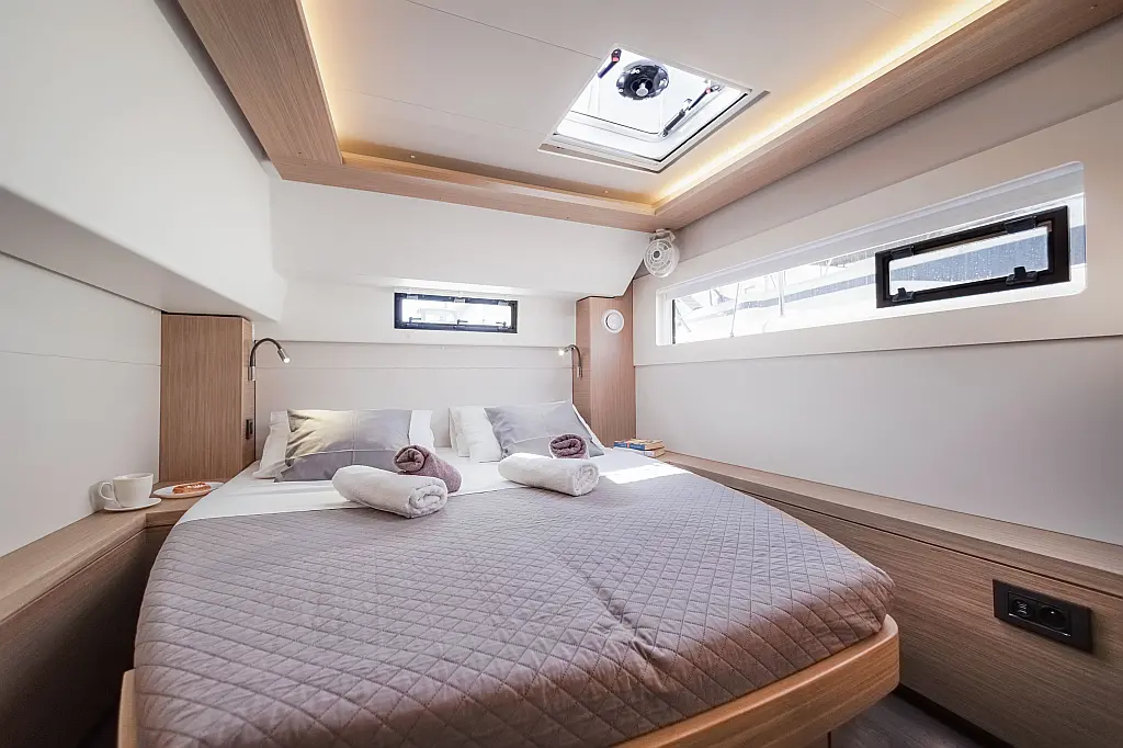 Refrigerator, Coffee maker, Flybridge, Solar Panels, Generator, Heating, Air condition, Water maker, Electric winches, Bimini, Cockpit speakers, Dinghy