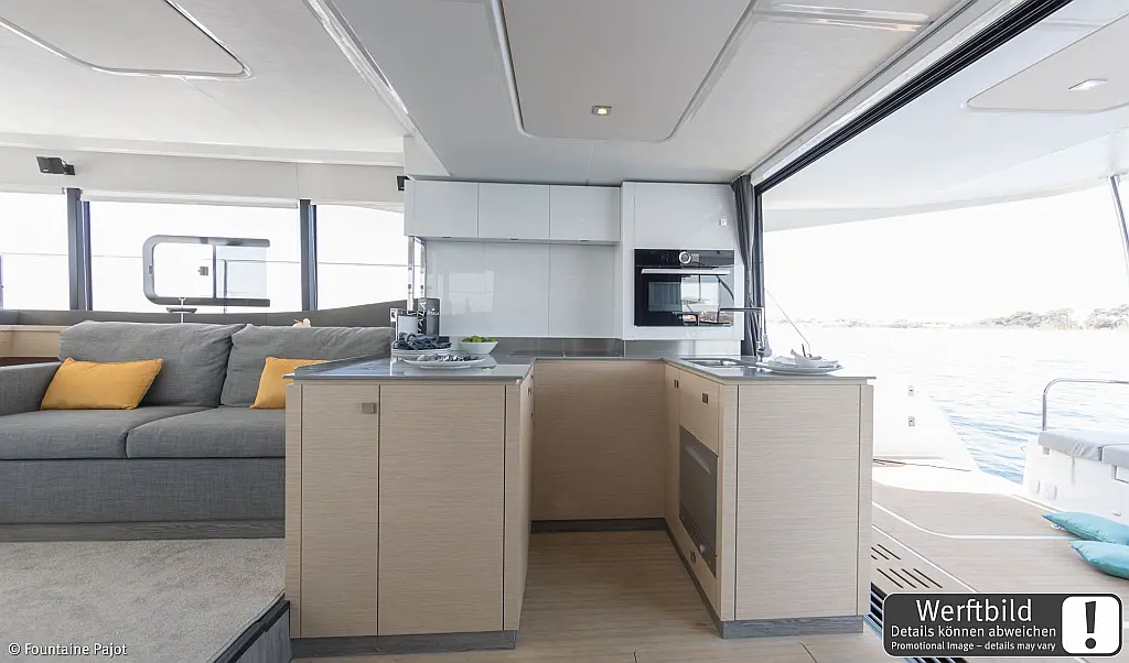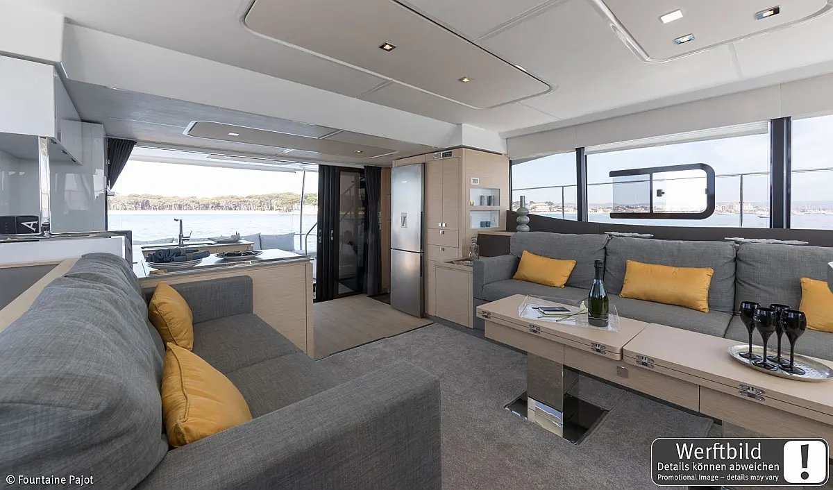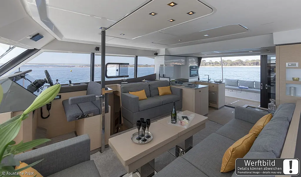 Refrigerator, Wi-Fi & Internet, Air condition, Water maker, Electric toilet, Bimini, Dinghy, Holding tank, Sprayhood, Cockpit cushions, Generator, Solar Panels, Teak Cockpit