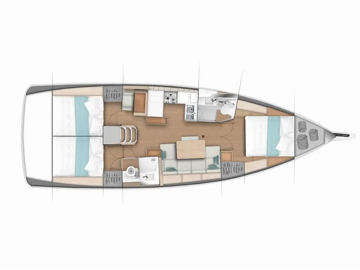 Cockpit cushions, Refrigerator, Bimini, Sprayhood, Dinghy, Heating, Air condition, Teak Cockpit, Inverter, Electric toilet
