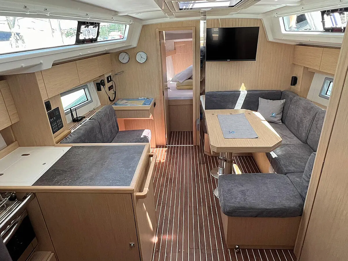 Bimini, Sprayhood, Außenbordmotor, Teak Cockpit, Klimaanlage, Heizung, Solar-Panele, Cockpit-Kissen