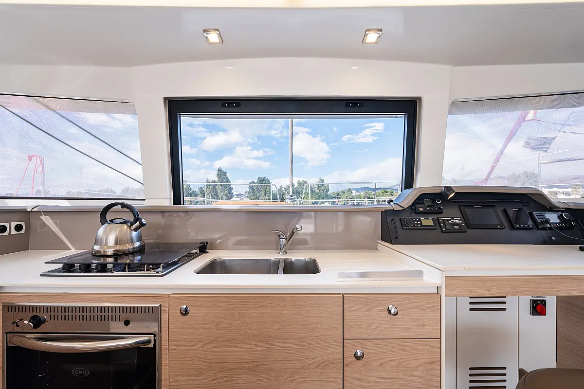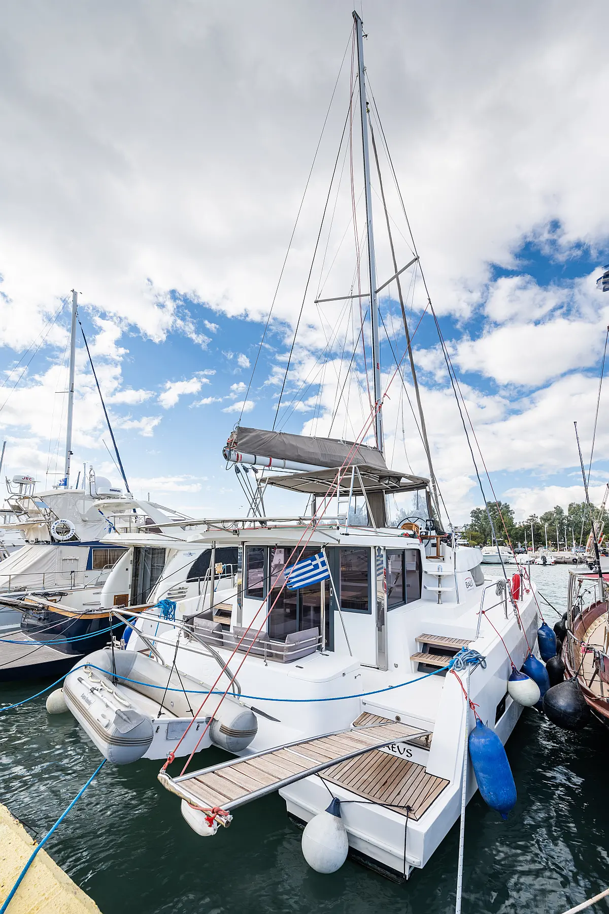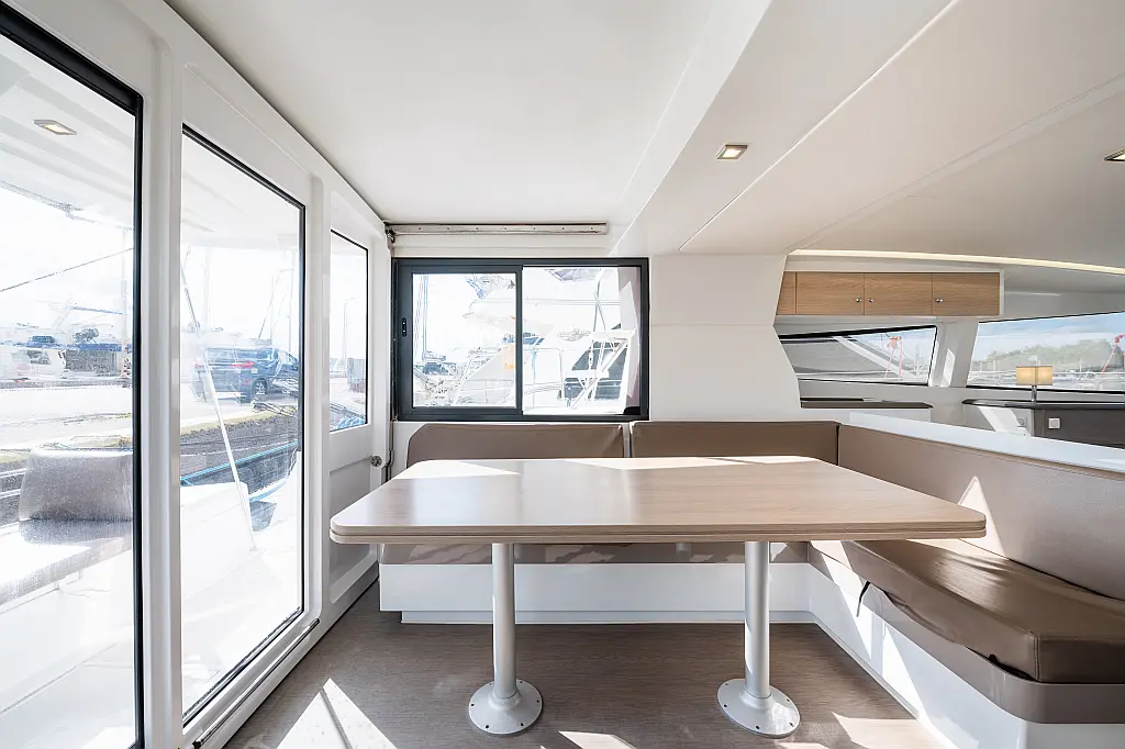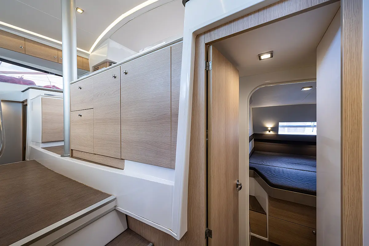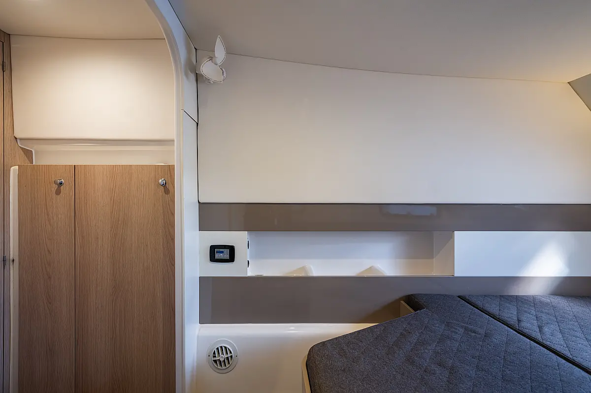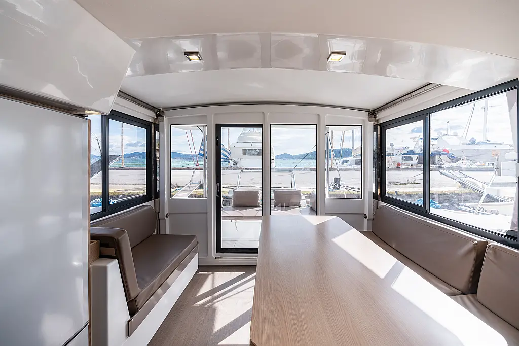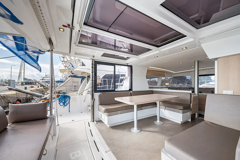 Holding tank, Air condition, Water maker, Generator, Cockpit cushions, Sprayhood, Swimming platform, Electric winches, Solar Panels