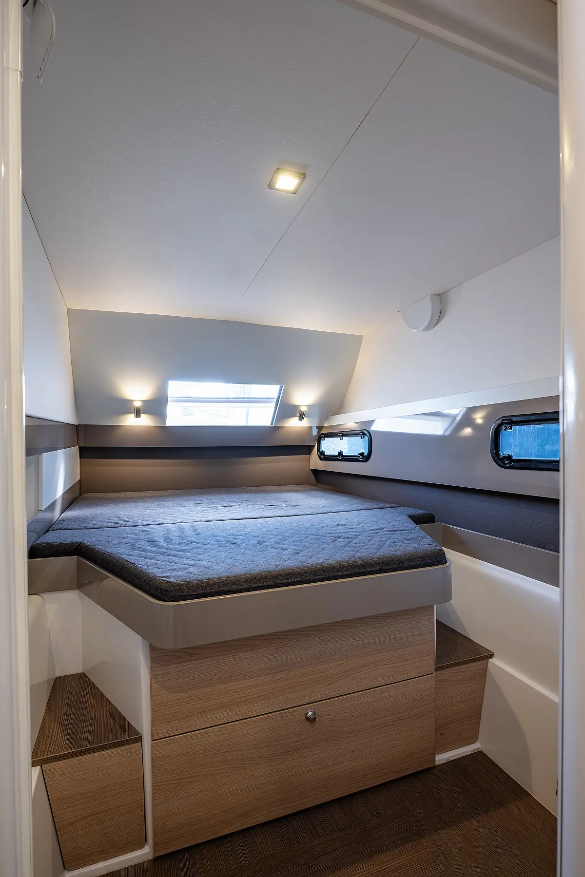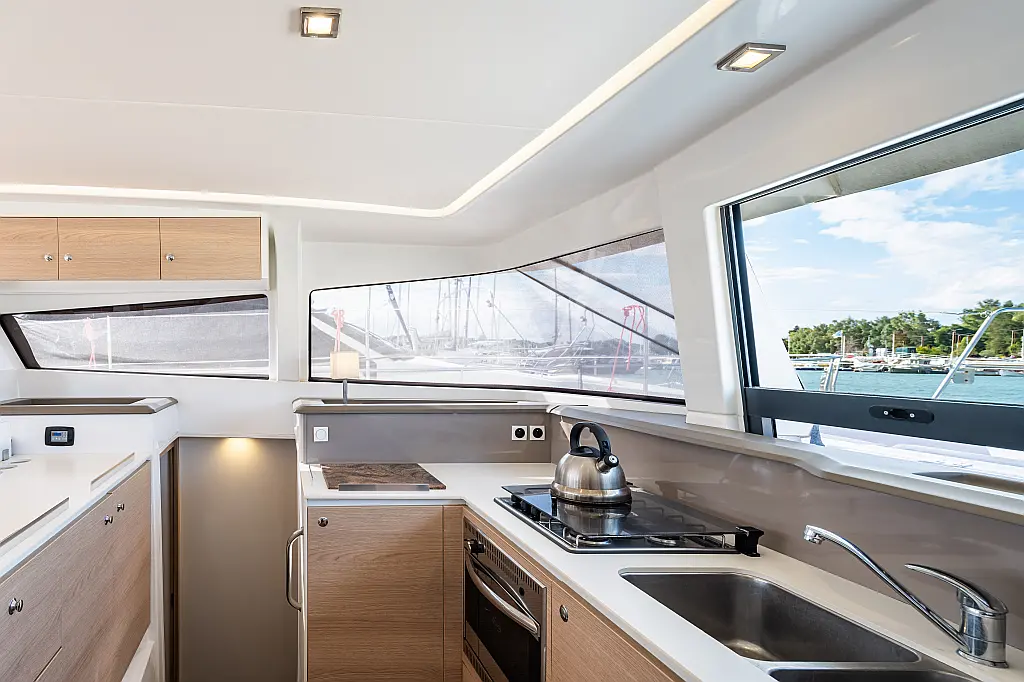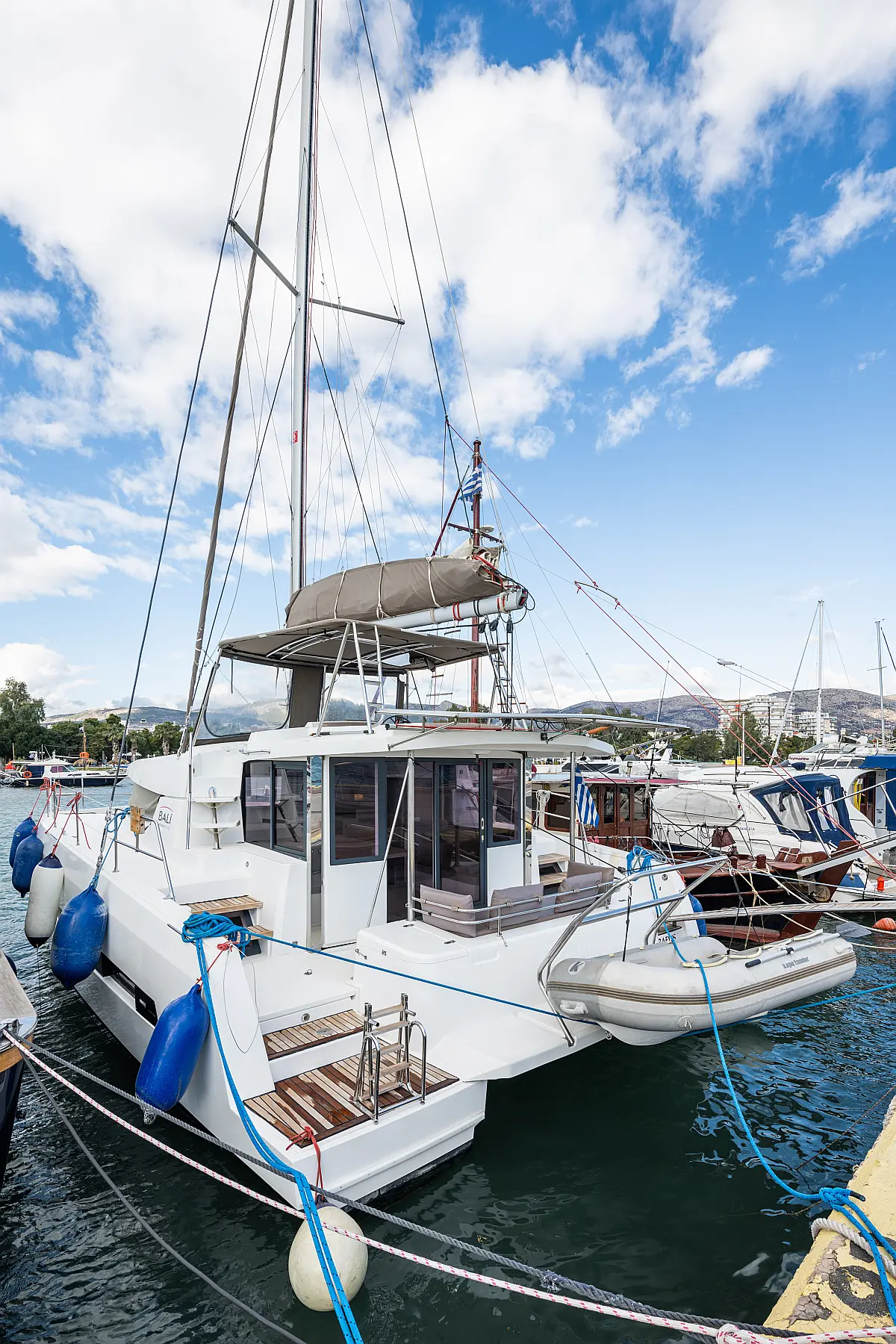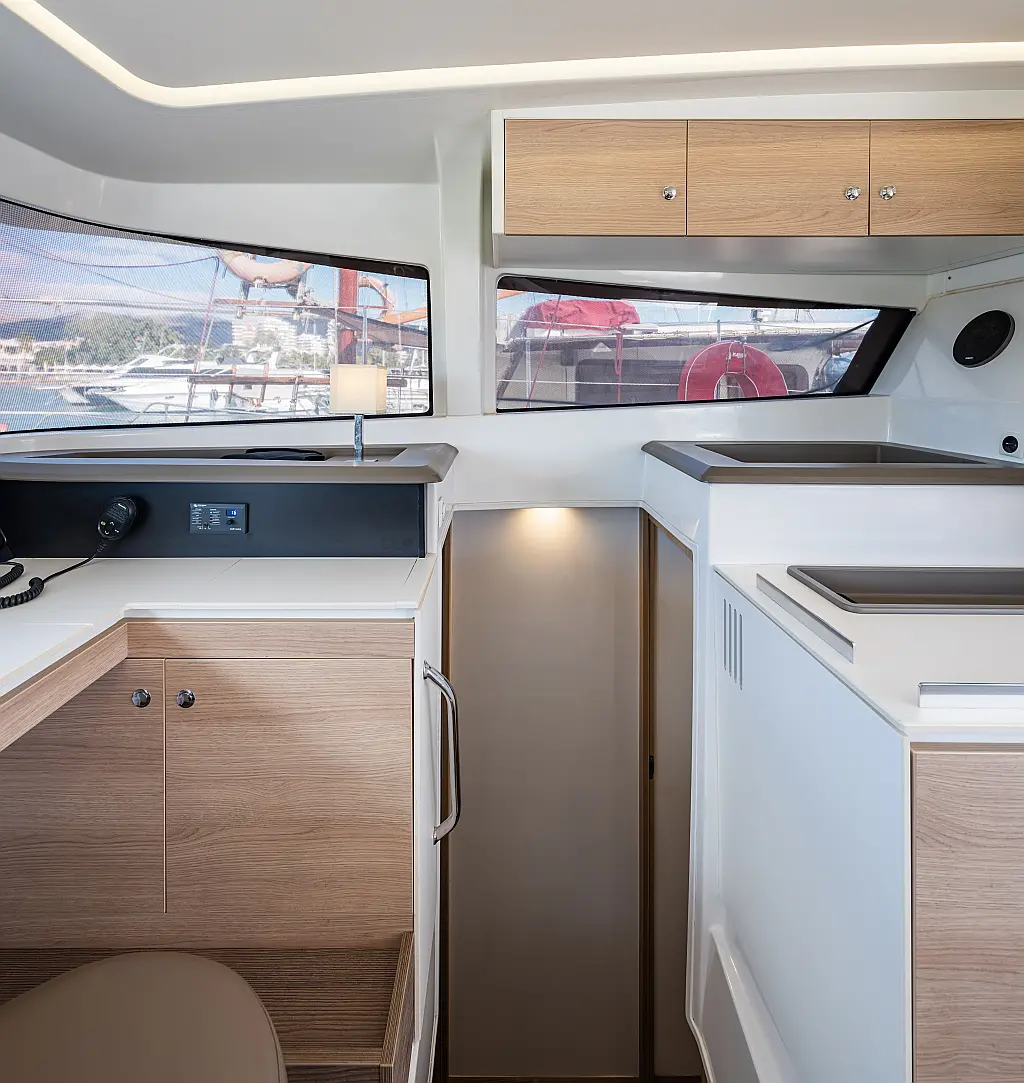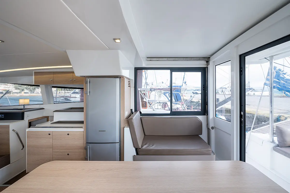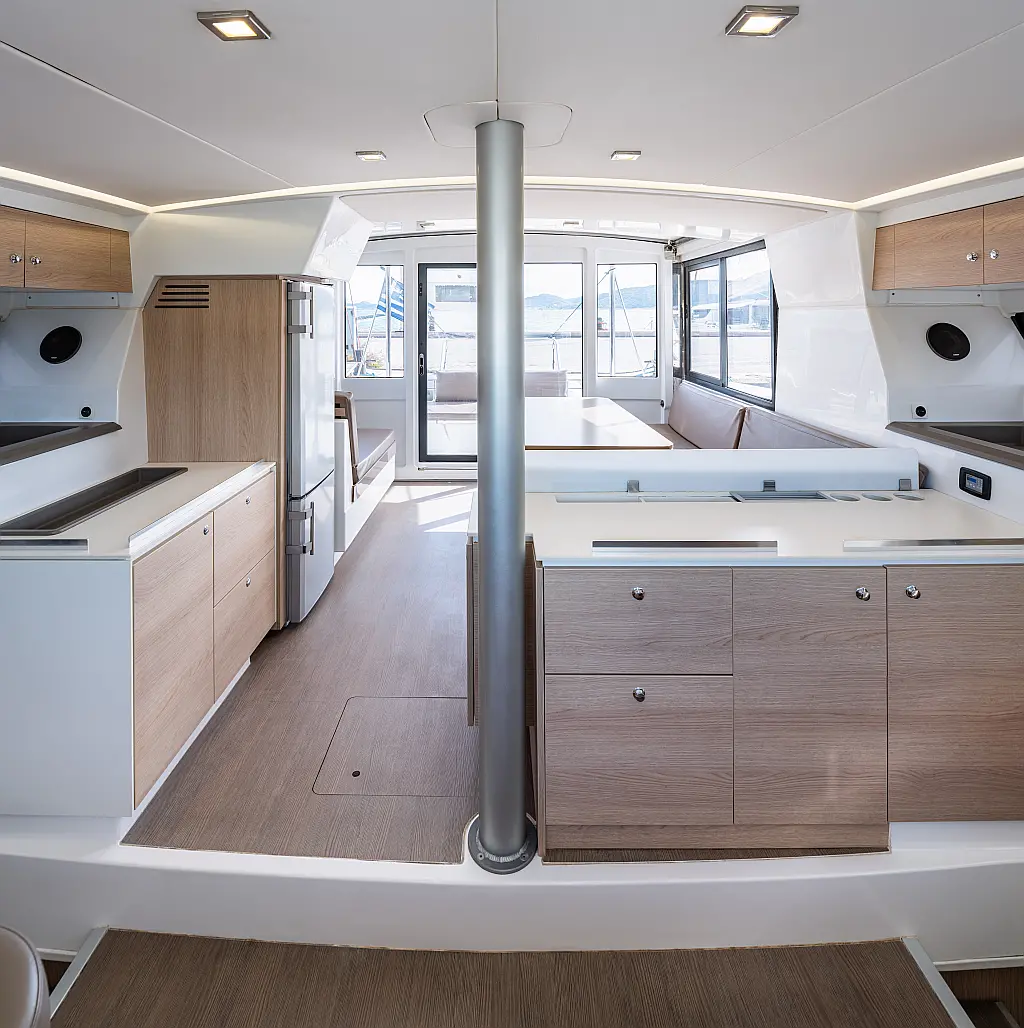 Holding tank, Air condition, Water maker, Generator, Cockpit cushions, Sprayhood, Swimming platform, Electric winches, Solar Panels