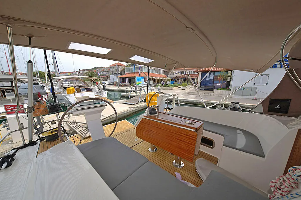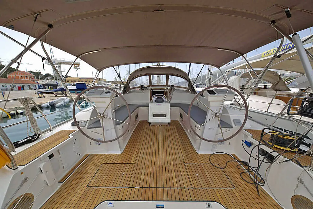 Bimini, Sprayhood, Electric toilet, Teak Cockpit, Heating, Solar Panels, Outboard engine, Cockpit cushions