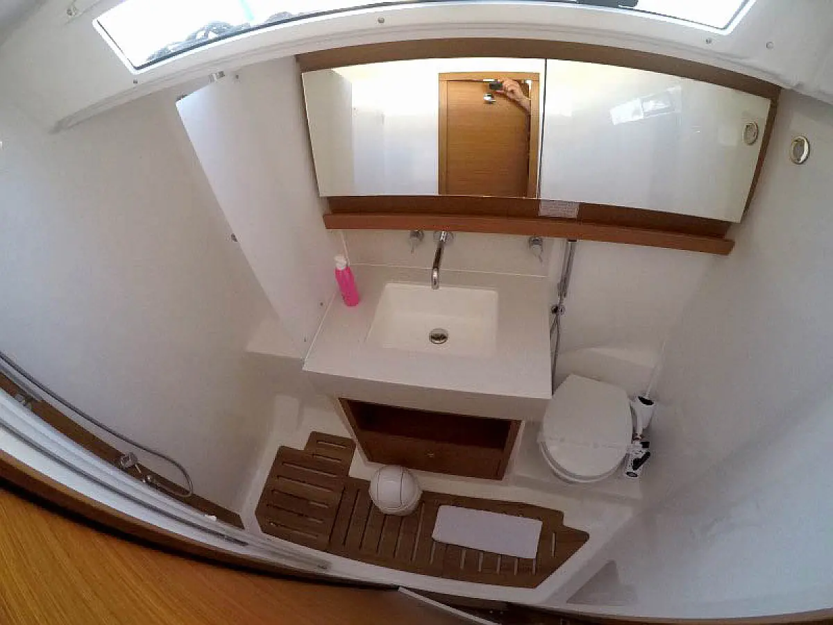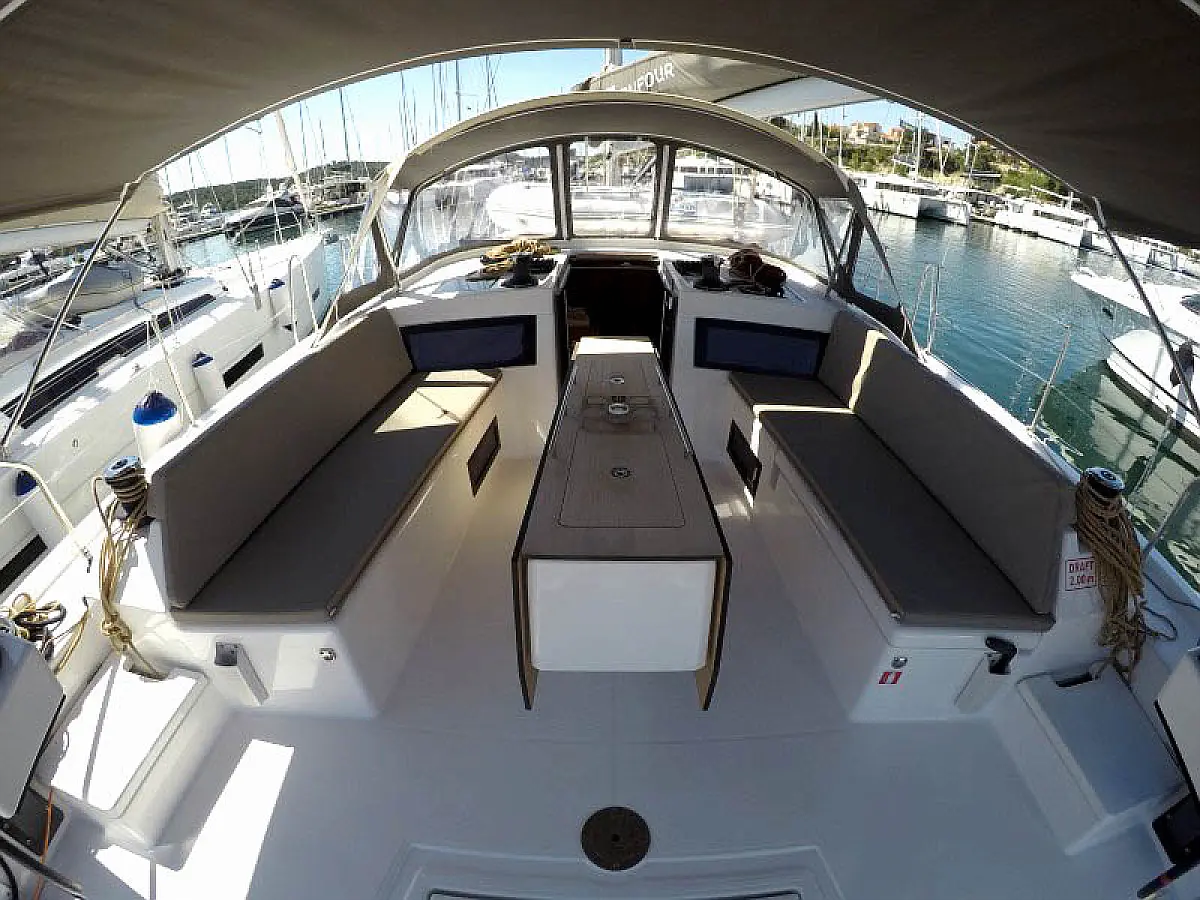 Refrigerator, Barbecue grill in cockpit, Bimini, Cockpit cushions, Sprayhood, Outboard engine, Dinghy, Wi-Fi & Internet
