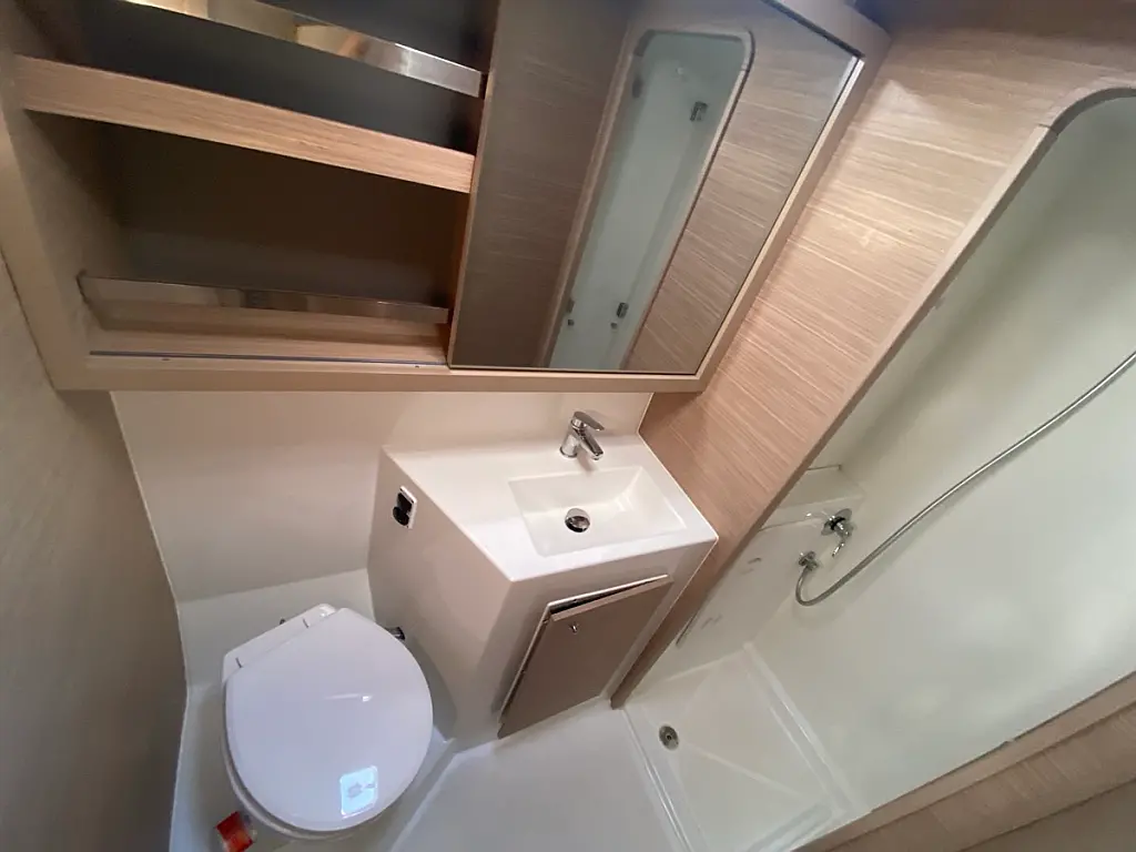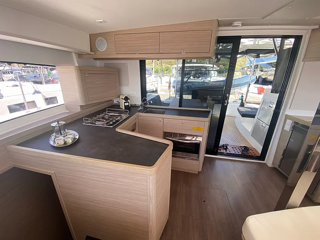 Cockpit cushions, Cockpit speakers, Coffee maker, Generator, Teak Cockpit, Refrigerator, Electric toilet, Air condition, Solar Panels, Water maker