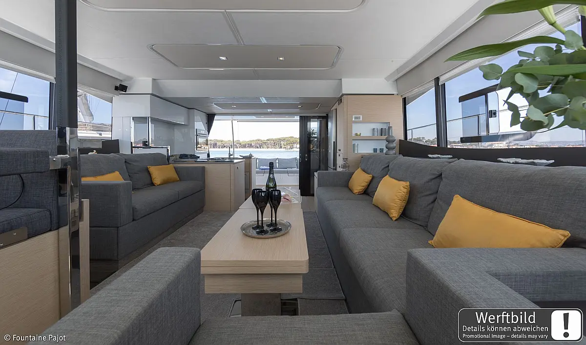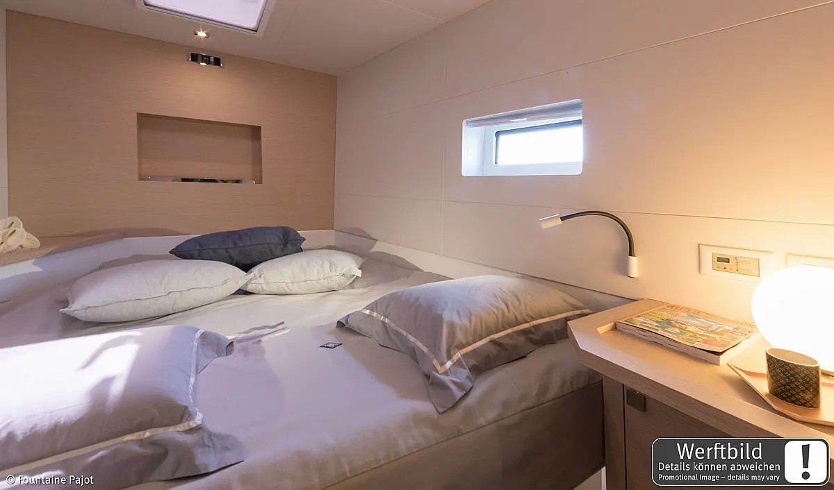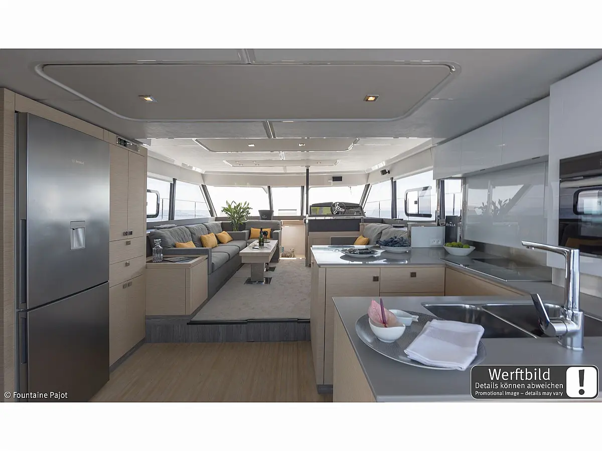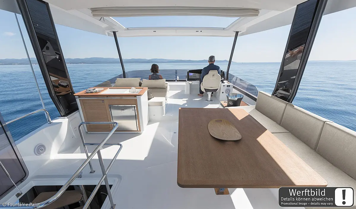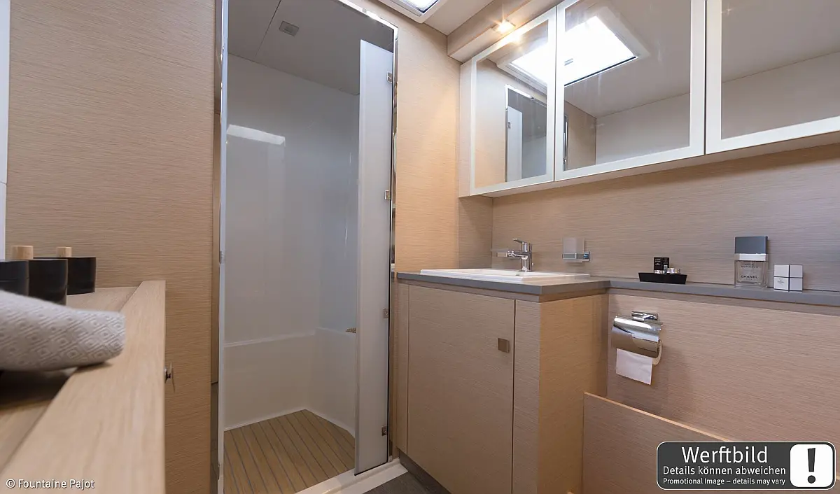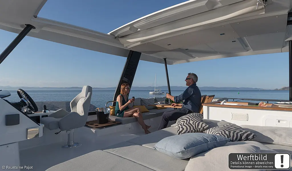 Refrigerator, Wi-Fi & Internet, Air condition, Water maker, Electric toilet, Bimini, Dinghy, Holding tank, Sprayhood, Cockpit cushions, Generator, Solar Panels, Teak Cockpit