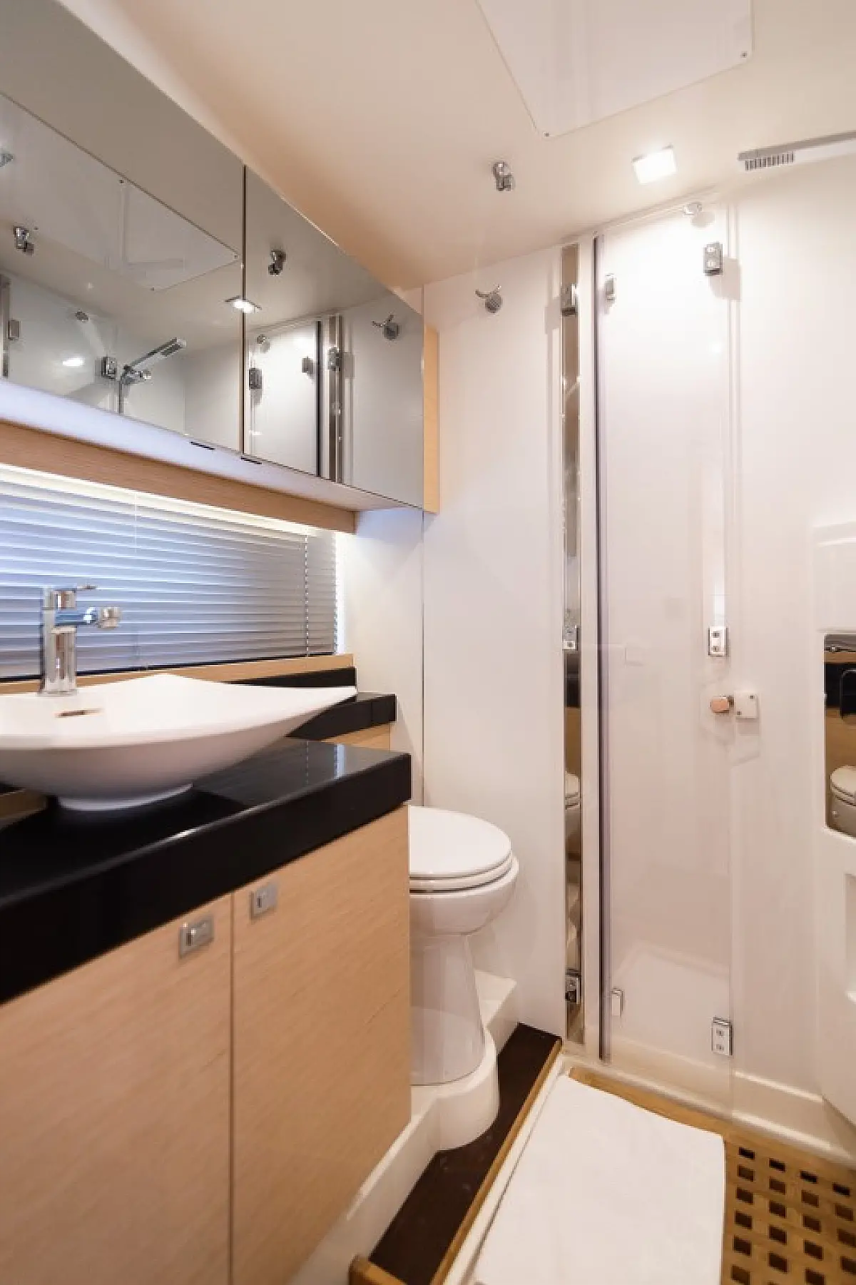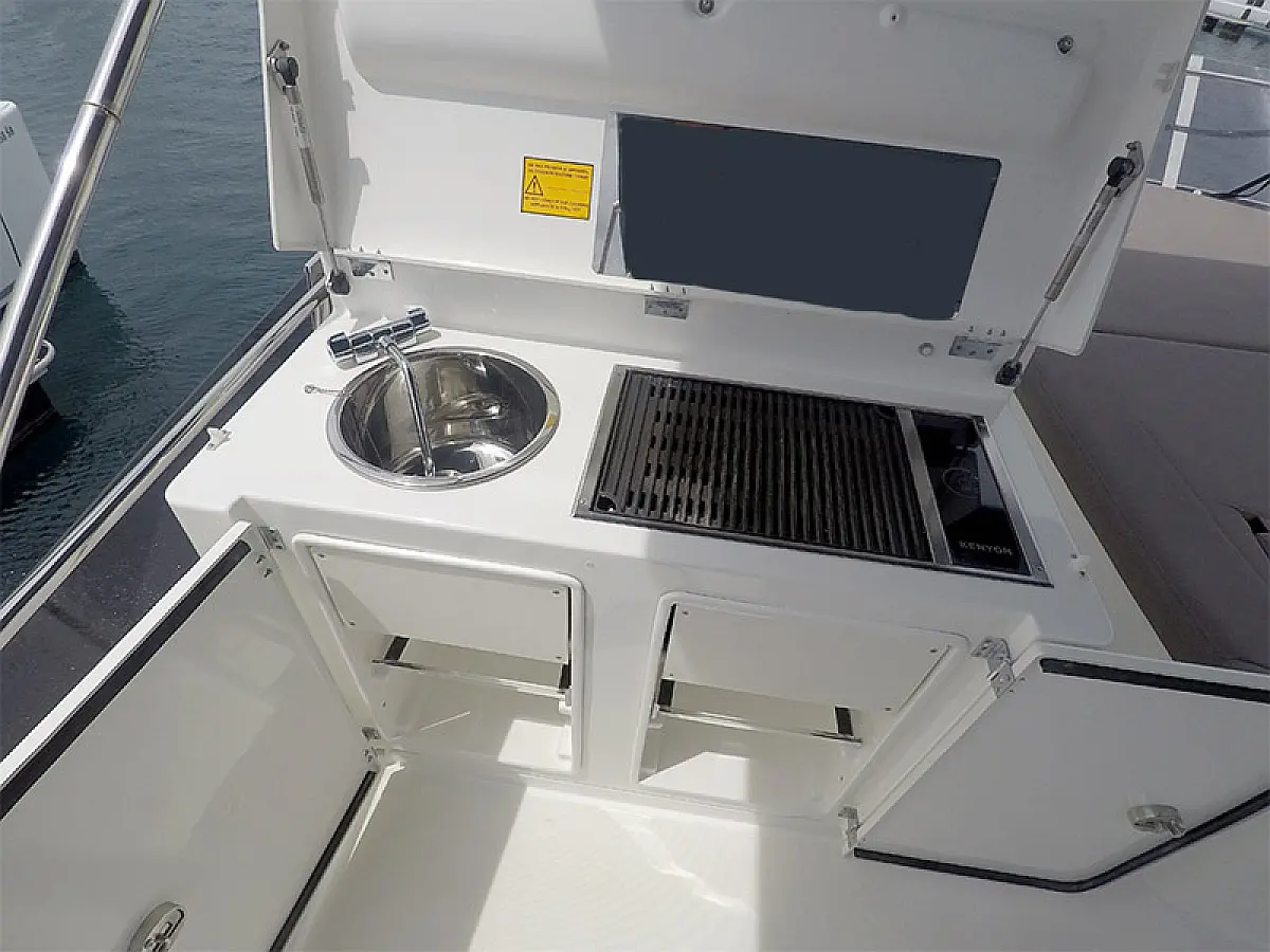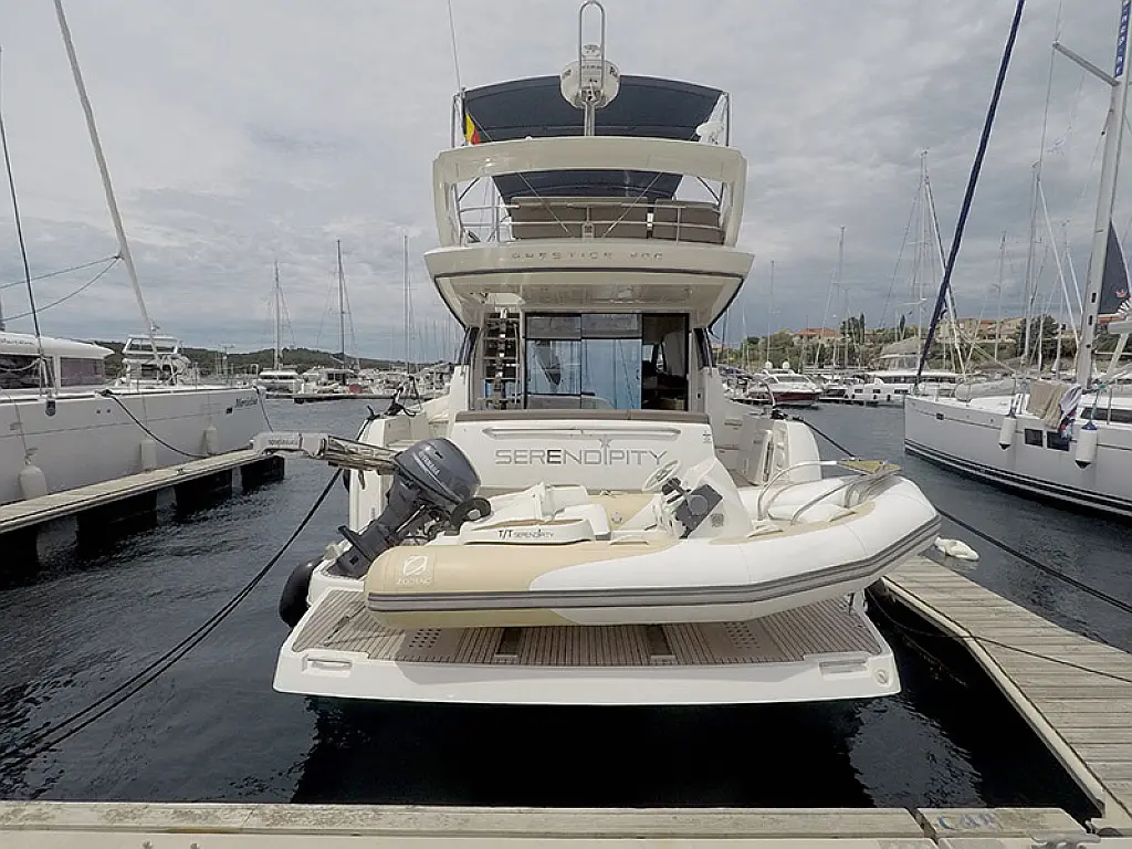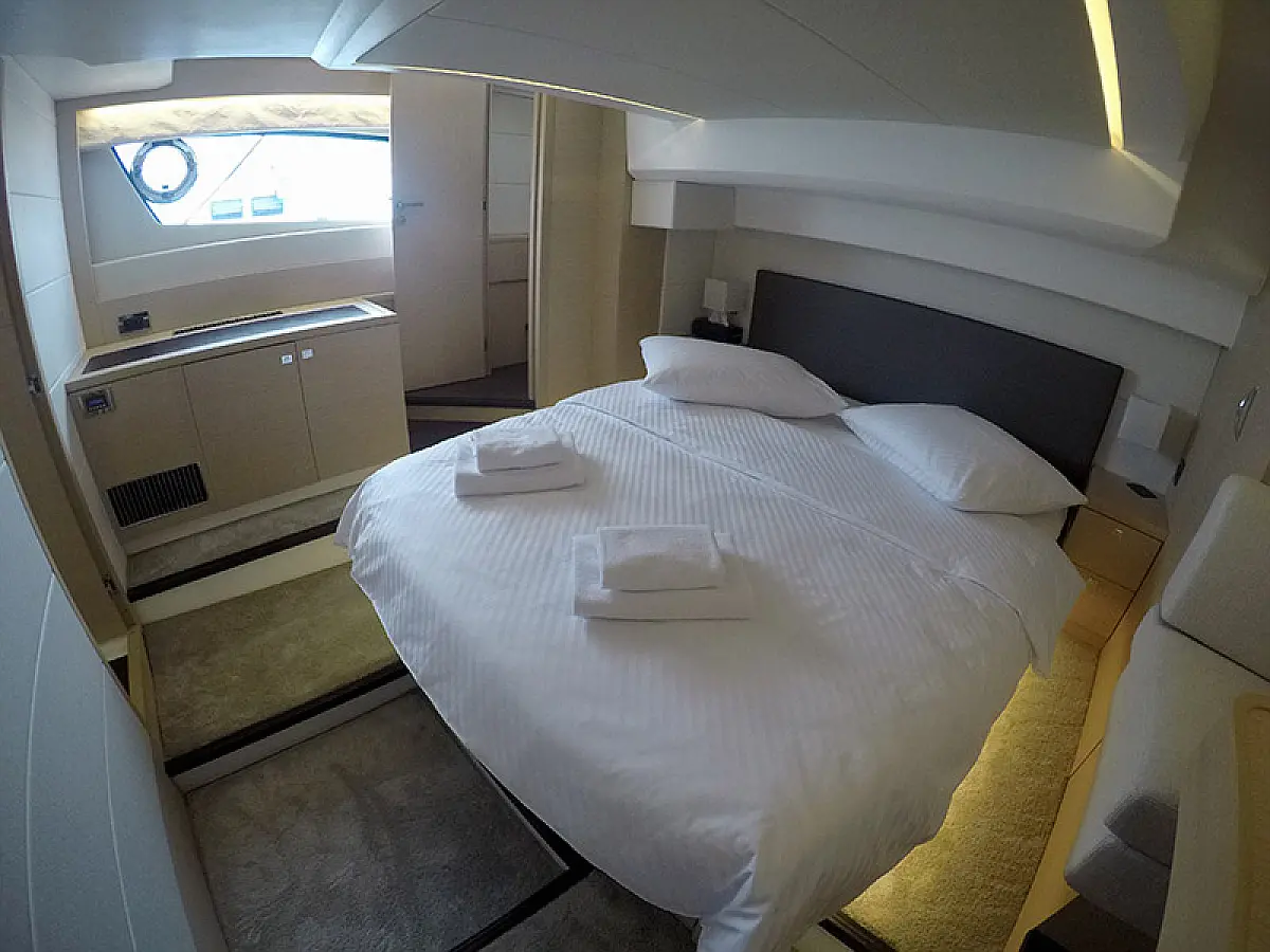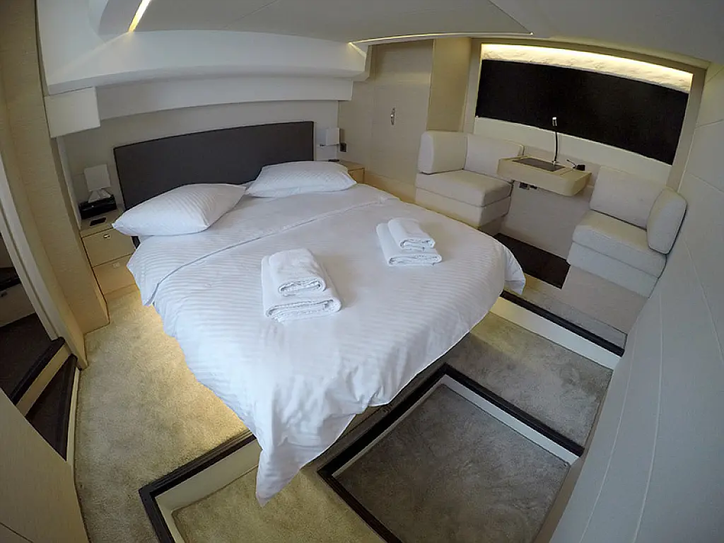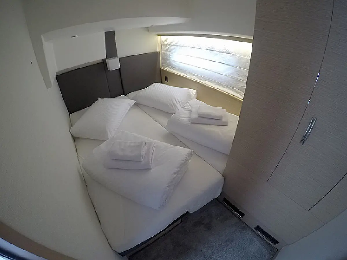 Generator, Heating, Air condition, Refrigerator, Bimini, Cockpit cushions, Outboard engine, Hydraulic gangway, Flybridge, Wi-Fi & Internet